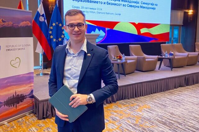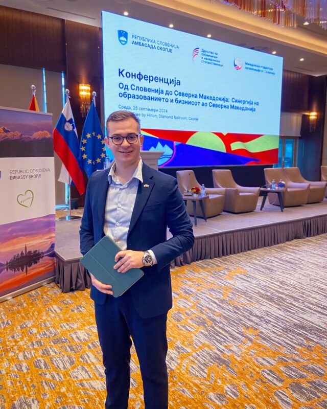 „Професорите се пристапни и отворени, без комплекси, без дистанца. На многу факултети предаваат и луѓе директно од пракса – што значи не учиме само теорија, туку и од реалноста од терен. Во текот на студиите има и директни контакти со компании – преку кариерни саеми, предавања, пракси. Како студент не си изолиран од “реалниот свет”, туку си активно вклучен во него“, вели Кристијан Поповски, претседател на Македонската студентска организација во Словенија (МСОС).