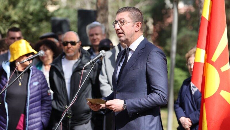 Нашата обврска денес е да не молчиме пред неправдата, да ја чуваме вистината и да се бориме против секоја форма на омраза и дискриминација. Македонија е земја на различности, а еврејската заедница, иако речиси уништена во Холокаустот, останува дел од нашата историја, култура и совест. Додека стоиме овде, да се заколнеме дека оваа трагедија никогаш нема да се заборави. Никогаш повеќе!, порача Мицкоски.