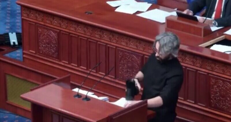 На денешната собраниска седница се случи инцидент, откако на двајцата пратеници од Левица не им беа прифатени амандманите за новиот Деловник за работа на Собранието. Прво, пратеникот Борислав Крмов искрши еден монитор и фрлаше амандмани кон потпретседателот на Собранието, Горан Мисовски, а потоа му се придружи и Димитар Апасиев.