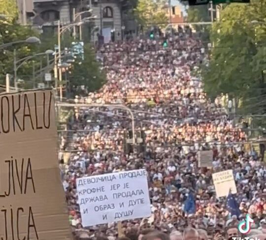 Во Белград се одржа деветтиот по ред протест „Србија против насилството“. Собирот почна пред зградата на српскиот парламент, а заврши пред зградата на телевизијата Пинк.